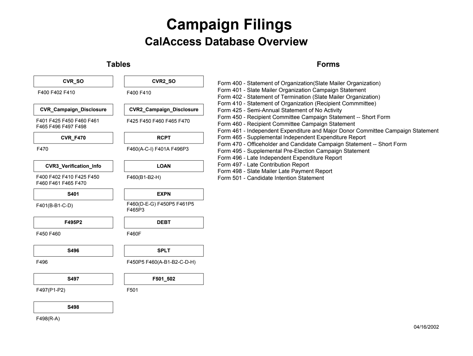 Mapping of FPPC Campaign Finance Forms to CalAccess Tables
